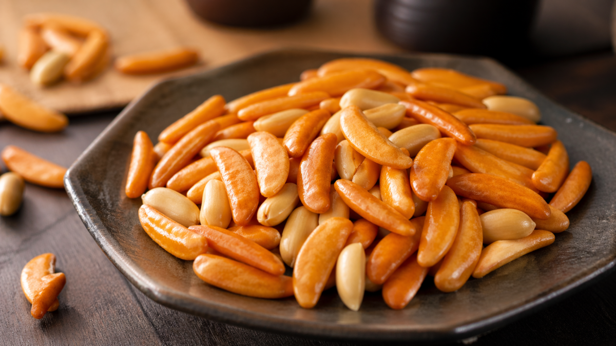 元祖柿の種(浪花屋製菓) は、新潟県長岡市で生まれ、柿の種という米菓の発祥とされる伝統的なお菓子です。大正13年(1924年)に創業者の妻が小判型の金型を誤って踏みつぶしたことで歪んだ形が「柿の種」に似ていたことから名付けられ、以来100年以上にわたり国産もち米を中心に作られ続けています。
