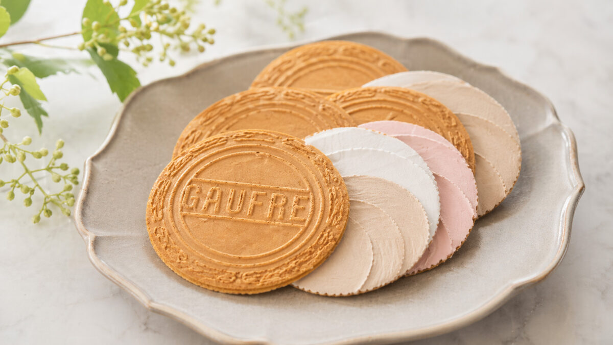 神戸風月堂 ゴーフルは、兵庫県神戸市を代表する銘菓の一つです。サクサクと香ばしい薄焼きの生地に、バニラ・ストロベリー風味・チョコレートのクリームをサンドした洋風スイーツで、薄く焼き上げた生地の「ほろほろ感」と、口の中で生地とクリームがスーッと溶けていく独特の食感が特徴です。