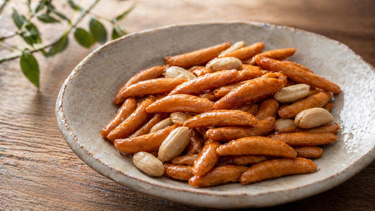 国内産水稲もち米(主に岐阜県産・秋田県産)を原料に、揖斐川町谷汲の美味しい地下水を使って丁寧に焼き上げた子鮎型のあられに、ピーナッツを組み合わせた商品です。岐阜県の鮎を意識した開発で、登録商標「稚鮎」を用いたユニークな形状が魅力。味のバリエーションとして、八丁味噌味やたまり醤油味などが知られ、コクのある甘じょっぱさが五平餅のような味わいを思わせるものもあります。無添加やグルテンフリーを意識したシンプルな製法のものも存在します。