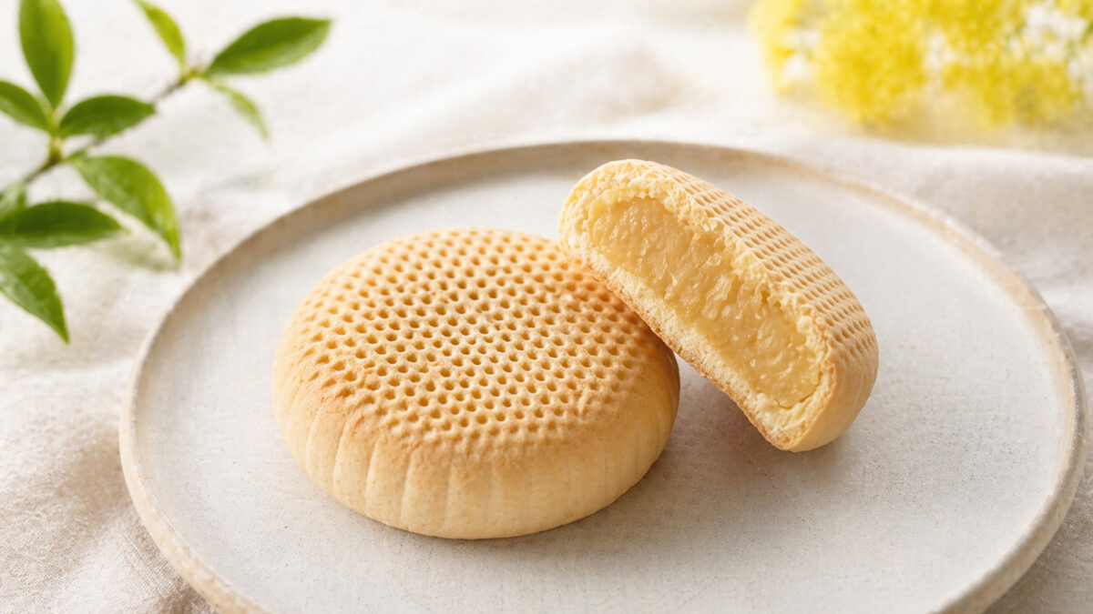 母恵夢は、バターをふんだんに使ったしっとり軽いビスケット生地に、北海道産の高級いんげん豆を丁寧に炊き上げた白あんに新鮮な卵黄を練り込んだ「黄味あん」を包んだ乳菓です。バターやバニラの甘い香りが漂い、優しく懐かしい味わいが特徴。「母のような温かさのある恵みの夢」という名前の由来通り、心温まる優しいお菓子として愛されています。