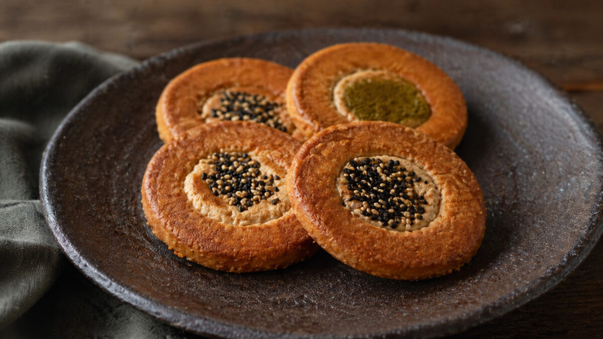 かたやきとは、小麦粉と砂糖を主原料に練った生地を厚めに成形し、重しをのせて長時間じっくり焼き上げることで、極めて硬い食感に仕上げたせんべいの一種です。名前通り「固く焼く」製法が特徴で、日本一硬いせんべいと称されるものもあります。一般的な醤油せんべいとは異なり、甘みのある味わいが基調で、表面に黒ごまや青海苔をまぶしたバリエーションが一般的です。